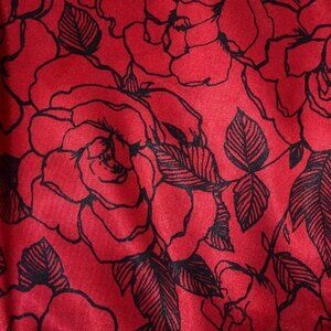 Red Robe With Black Roses - Size Large - Knee Length - Tie Waist - Slit Lace Sleeve - One Side Pocket - 100% Polyester