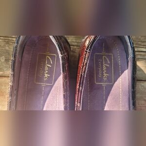 Clarks Everyday Women's Croc-Embossed Brown Leather Flats, 7.5