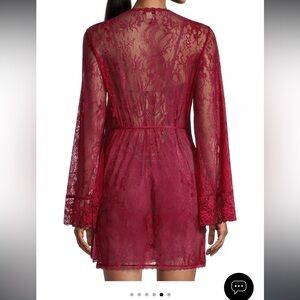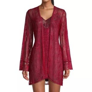 In Bloom's wrap robe flaunts beautiful lace with a matching satin belt.