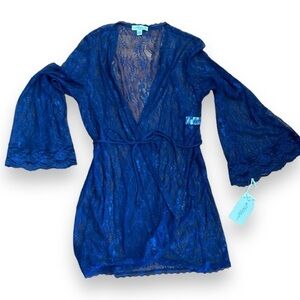 In Bloom Women's Robe Navy Blue marine Lace wrap NEW NWT sz XL feminine gift