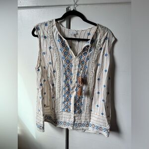 J. Jill Lilah Textured-Stripes Embroidered Top