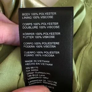 Material: 100% polyester body, 100% viscose lining