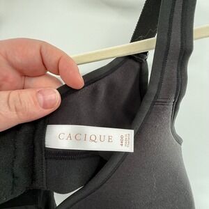 Cacique lightly lined full-coverage bra in size 44DD. Black comfort-stretch fabric with smooth molded cups, wide adjustable straps, and supportive band with hook-and-eye back closure. Soft, breathable blend (poly/cotton/spandex) offers everyday comfort and shaping without added bulk. Great smoothing fit for work, daily wear, or lounge.