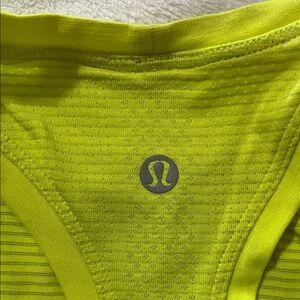 Vibrant neon yellow tank top. Ideal for workouts. Racerback design for ease of movement the top is in great conditions, but has a few stains. Please check the pictures.
