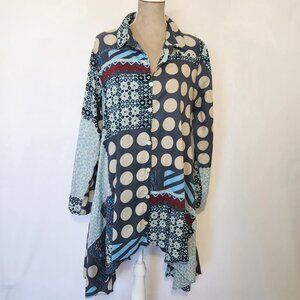 Tulip Women's Oversized Small Multi-Color Patchwork Asymmetric Button Tunic Top