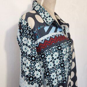 Tulip Women's Oversized Small Multi-Color Patchwork Asymmetric Pockets Button Down Tunic Top Lagenlook Art to Wear Boho Hippie Anti Fashion Layering Gently Pre-Owned Excellent Condition Reasonable Offers Welcome