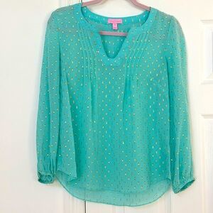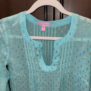 Lily Pulitzer Aqua and Gold Blouse XS