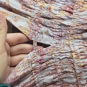 Flirt and flounce in this printed mini dress from UO. Cut with a plunging neckline and adjustable spaghetti straps at the triangle cups. Fitted with elastic banding at the bust and finished with a ruffled skirt.