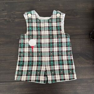 Vintage 90s Golf Plaid Romper Jon Jon Size 2 Boys Classic Traditions Made USA