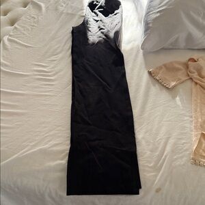 The label says extra small but truly fits more of a size small or size 4. Slight flare in the legs and hugs your body.
