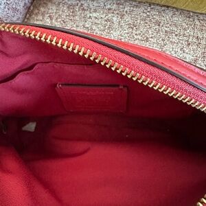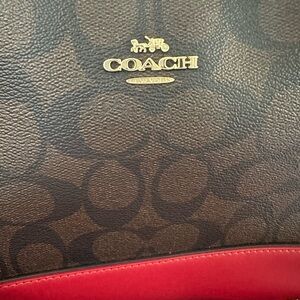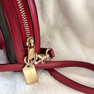 Chic Coach crossbody with red and brown design. Ideal for versatile style.