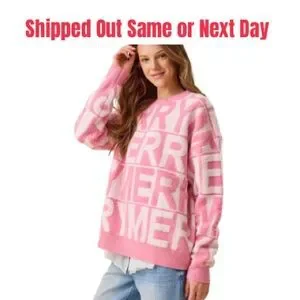 NWT Peach Love Christmas Pink Merry Sweater - LARGE