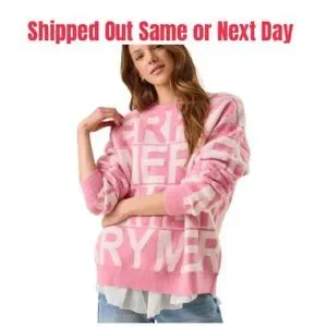 Chic pink sweater with bold lettering. Soft and comfortable. Ideal for everyday wear.
