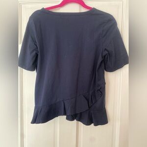Chic dark blue Banana Republic Size Small top with short sleeves and asymmetrical ruffle detail.