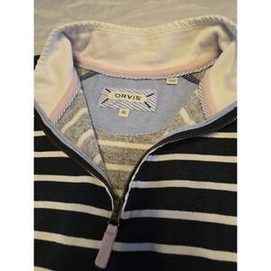 Orvis Striped Quarter Zip Pullover Fleece Shirt Womens XL Black White Striped