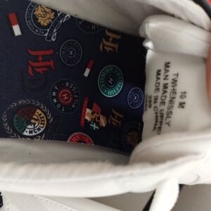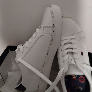Crisp white sneakers with signature logo. Ideal for everyday style.