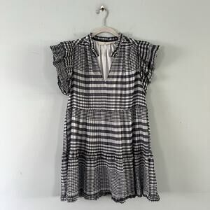Marie Oliver Tiered Bay Organdy Check Plaid White Mini Babydoll Dress