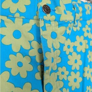 Motel Zoven Blue & Green Retro Daisy Print Flared Trousers Size M