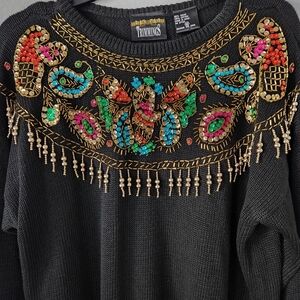 Vintage Embellished Black Sweater