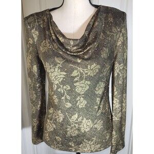 Alex Evenings Women’s Small Gold Metallic Floral Cowl Neck Stretch Top
