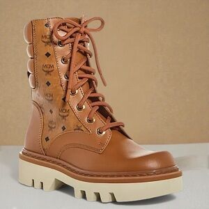 New MCM Women’s Motor Visetos Lace-Up Boots