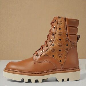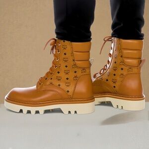 Designed with Italian calf leather and lamb leather trim, these boots feature MCM’s signature Visetos monogram canvas upper and a durable white rubber lug sole for both style and comfort. The lace-up design ensures a secure fit, while premium details elevate the overall look.