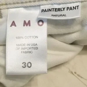 AMO Painterly Pant Women's Size 30 Ivory Carpenter Raw Hem Made In USA (31x26)