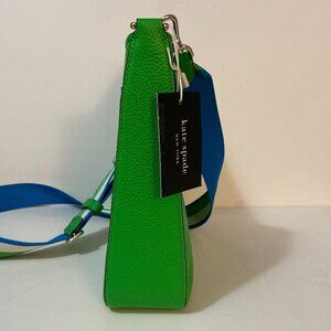KATE SPADE Hudson Messenger Crossbody Bag Turf Green Blue White Pebbled Leather