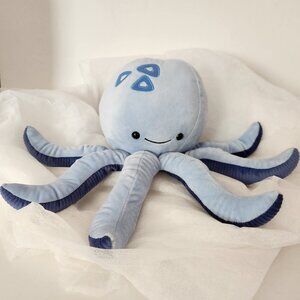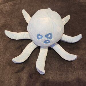 Pre-owned, in good clean condition. There is one area on back of head where stitching is a little loose from tag removal. See photos.Approximate Measurements: 13" L, 18" W when tentacles spread, Head approximately 7" W. Light blue with dark blue bottom.
