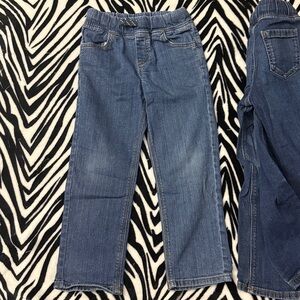 New without tags. 3 pairs of boys jumping beans brand pull on straight leg jeans in size 5T. 2 are dark wash, one is medium wash. All 3 pairs have 2 side & 2 back pockets as well as a functional drawstring. Stylish straight leg jeans by Jumping Beans. Comfortable fit and classic blue color. Ideal for everyday wear.