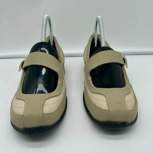 Lands' End Comfort Shoes Women 6 Wide Mary Jane Rubber Grip Sole Beige Tan