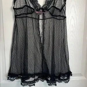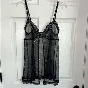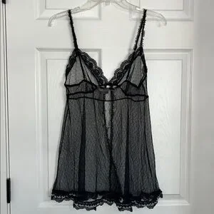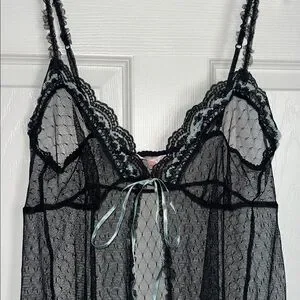 Victoria’s Secret Sheer Black Babydoll with Blue Lace Trim