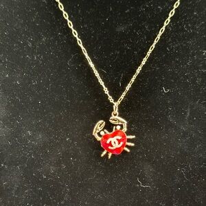 Gold & Red Enamel Crab Pendant Necklace with Pearl Accents – 18” Gold Stainless Steel