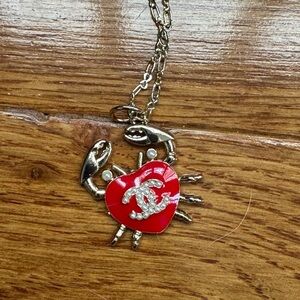 Red & Pearl Gold Crab 18” Infinity Necklace