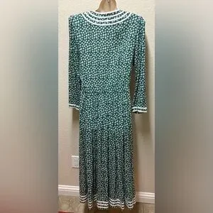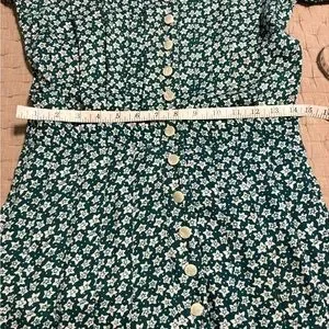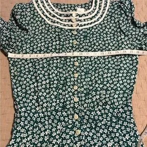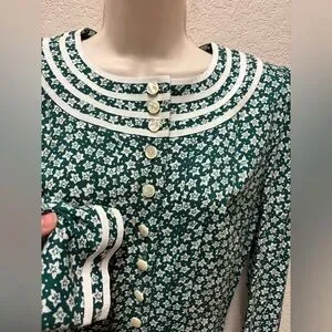 Vintage Green Floral Button-Down Dress Prairie Style 80s