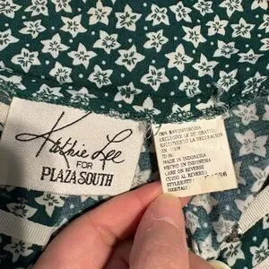 Vintage 80s Kathie Lee for Plaza South button down floral prairie style dress. White ribbon trim around neck line and bottom hem. Pearly buttons and inner snaps. Built in shoulder pads. Measurements in photos. In excellent vintage condition. Size no longer on tag but most likely a small as noted by measurements.