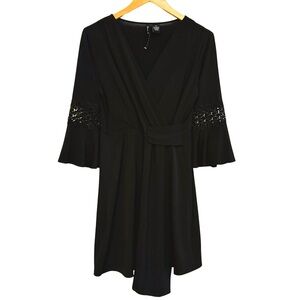 Gorgeous Black Boho Bell Sleeve Swing Dress w/ Surplice Neckline