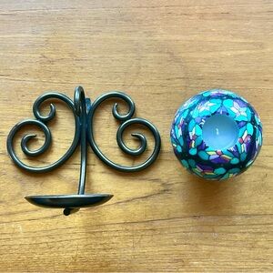 Round Mosaic Patterned Candle w/ Black Wrought Iron Scroll Wall Decor