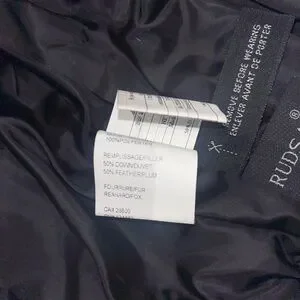 Chic and cozy down Rudsak Collection puffer with a subtle sheen finish. Bomber-style silhouette featuring a high collar, interior zip with snap-button closure, detachable zip fur hood, and zippered pockets. Size small.