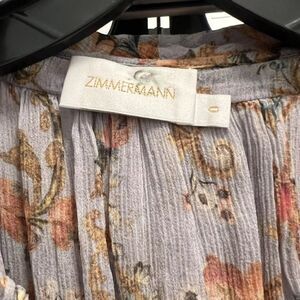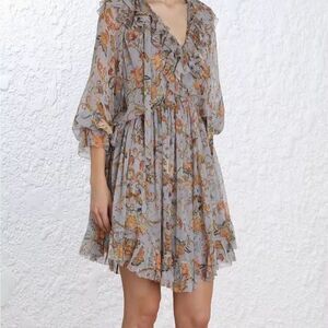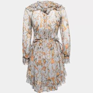 Auth Zimmermann Blue Floral Print Crinkled Chiffon Ruffled Drawstring Dress XS