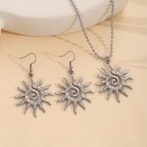 Silver Sun Spiral Boho Jewelry Set โ Stainless Steel Necklace & Earrings