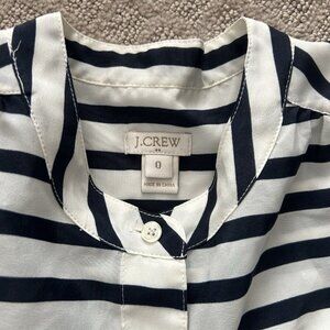 Elevate your wardrobe with this stylish J.Crew blouse. The black and white striped pattern make it a timeless piece that can be worn for any occasion. The sleeveless, collared design with button closure gives it a classic look that can be dressed up or down.