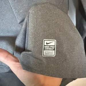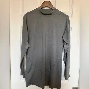 Nike Pro Combat Gray Long Sleeve Compression Top in men’s size 2XL. These have side accents around the armpit area for ventilation. This top is meant to fit super tight. My husband is generally a size medium/large and he wore it as a looser top. Great used condition. The only flaw is that the Nike logo on the neck is slightly peeling.