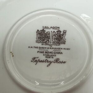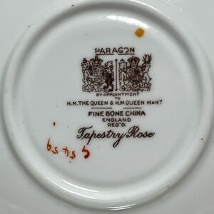 Royal Paragon “Tapestry Rose” H.M. The Queen H.M Queen Mary Three Saucers