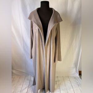 Barefoot Dreams Luxechic Hooded Robe - M/L - taupe luxury soft unisex cozy