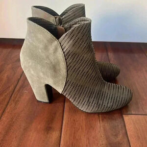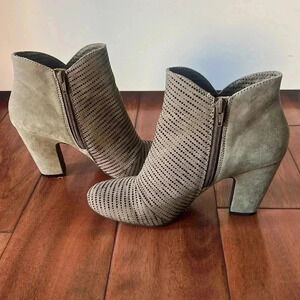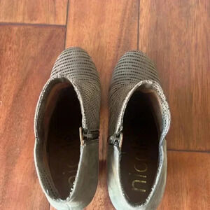 Nichole CeCe Women's Tan Leather 3" Block Heels 8 M Booties Zipper 7" Tall
