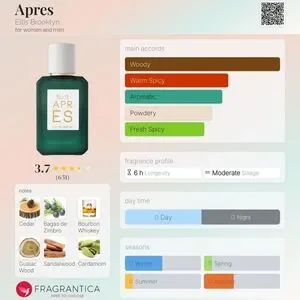 APRÈS opens dewy like first snow and then evolves into a boozy-woodsy brew laced with spices and sweetness. Addictive, compelling and bold, APRÈS is a beautifully structured scent with both strong sillage and longevity.