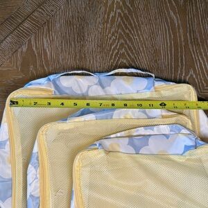 Set of 3 yellow, blue & white floral print mesh travel packing cubes. Never used, pristine condition.