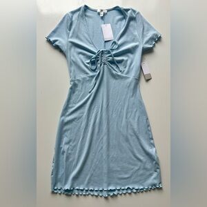 NWT BP Nordstrom Blue Tie Front Lettuce Edge Fitted Mini Dress Women’s Medium