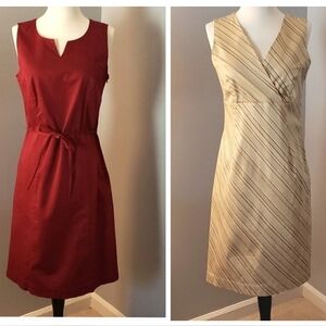 2 SHIFT DRESSES LINED BURGUNDY & OTHER IS CREAM BROWN TURQUOISE V NECKS SIDE ZIP